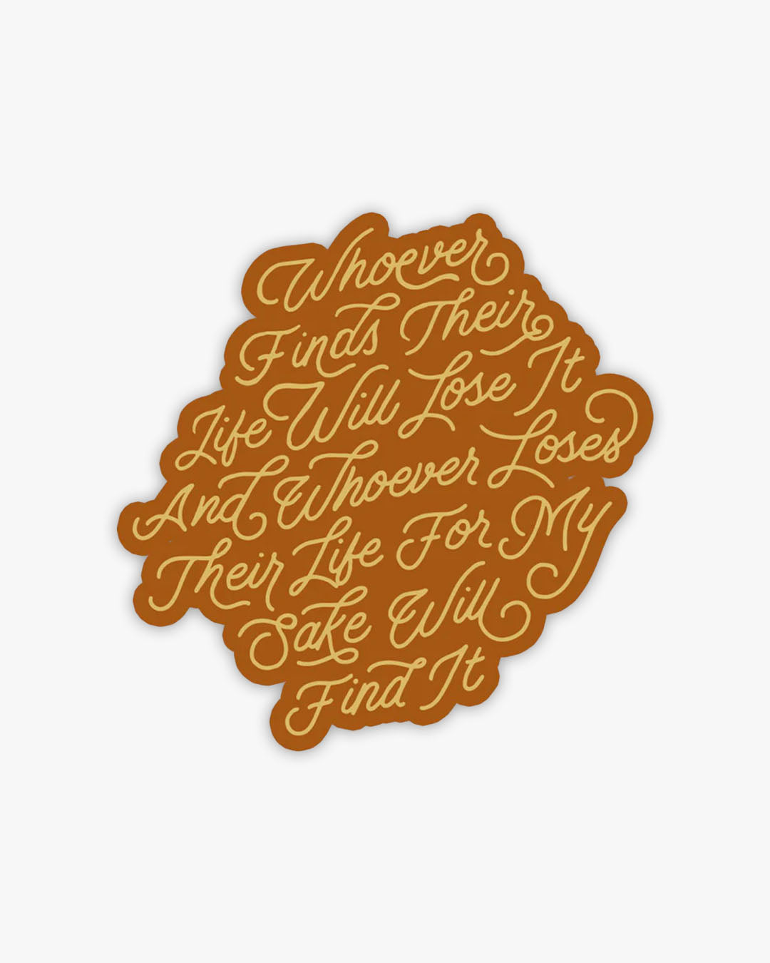 Die-cut sticker with Finds Their Life design.